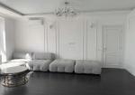 Формат: кухня-гостиная, изолированная спальня, огромная гардеробная, большой санузел с ванной