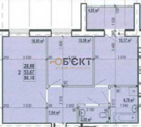 Площадь: Общая — 56 м², жилая — 31 м², кухня — 9 м².
